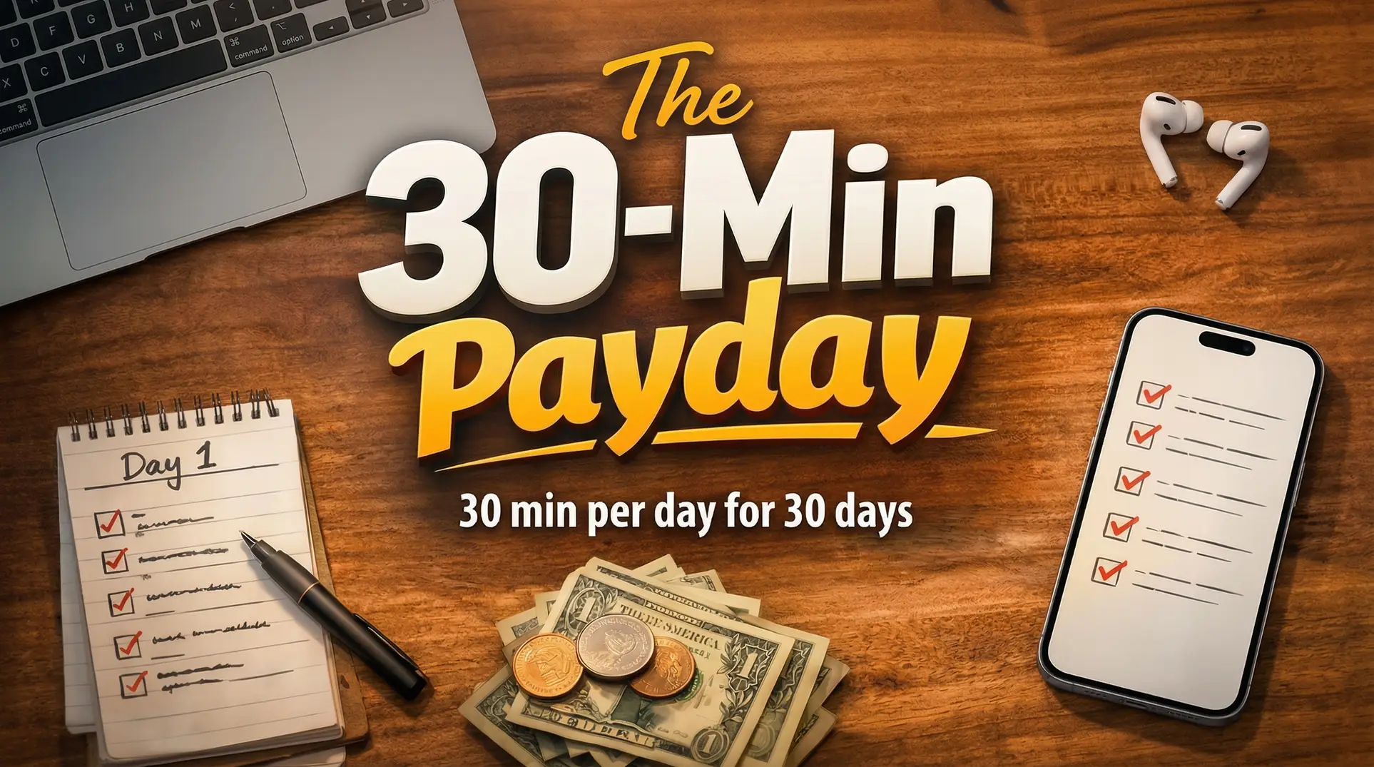 Just: here's how to go from nothing to first income, doing about 30 minutes of focused work per day.